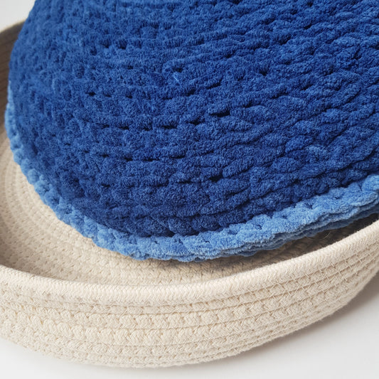 Cos cu perna catifelata pentru caini si pisici, bej-albastru, 45 cm (lucrata manual)